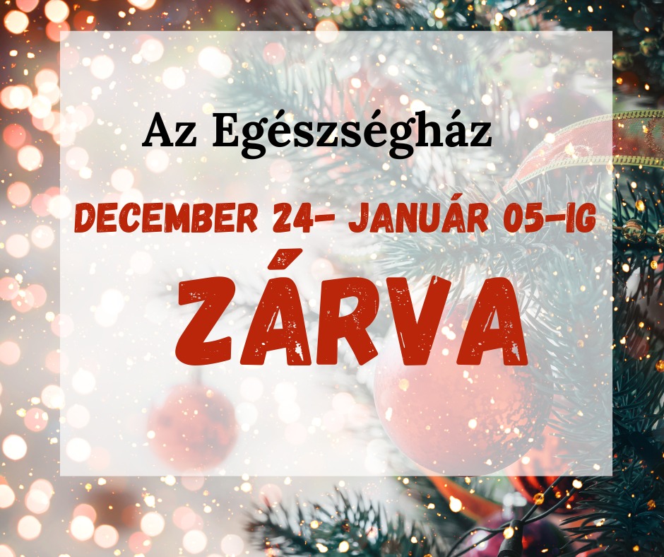 Tájékoztatjuk Tisztelt Pácienseinket, hogy a Biatorbágyi Egészségház december 24. és január 2. között zárva tart. 📅 Nyitás: január 5-én, hétfőn. Köszönjük megértésüket, kellemes ünnepeket kívánunk!Biatorbágyi Egészségház