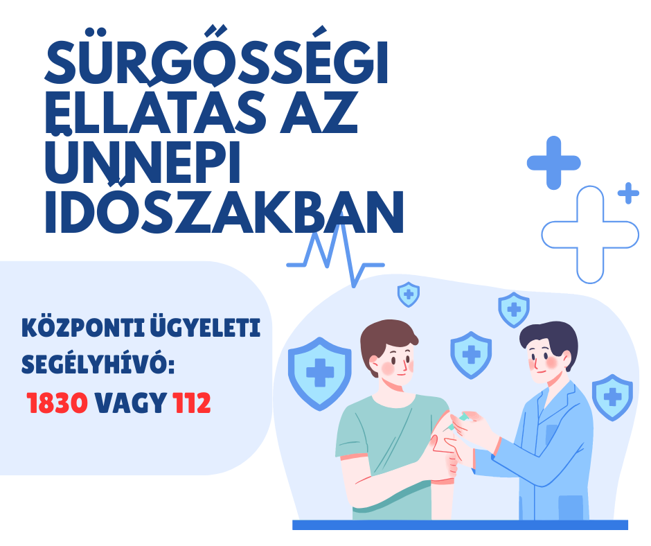 Az ünnepi időszakban, az Egészségház zárva tartása alatt sürgős esetekben az alábbi ügyeleti ellátások vehetők igénybe. Központi ügyeleti telefonszám:📞 1830 📞 112 Háziorvosi és sürgősségi
